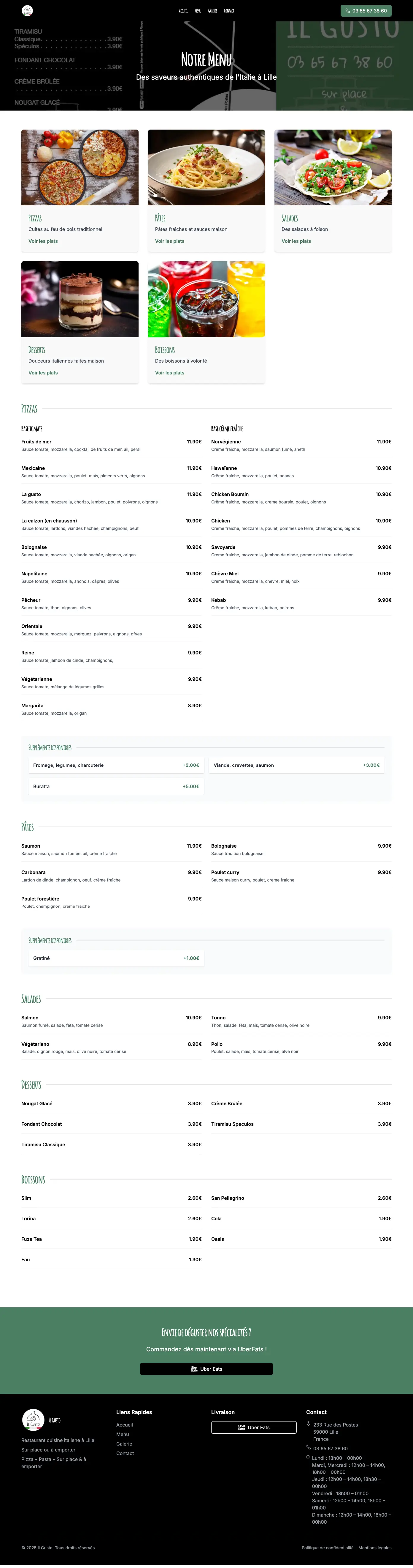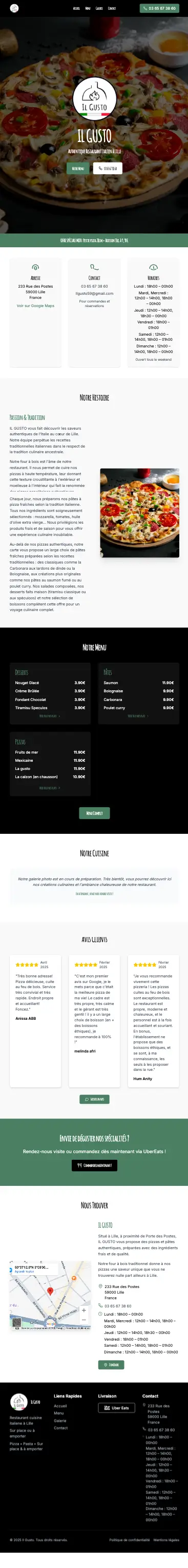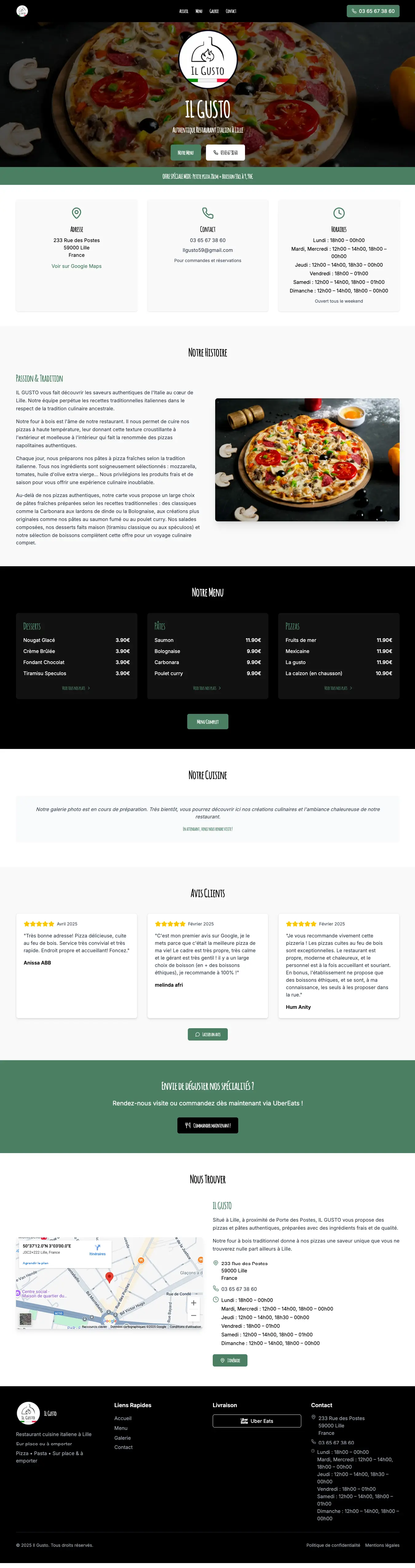 Design of a modern website for IL GUSTO, an Italian restaurant in Lille. Full-stack project with Strapi (headless CMS) and Next.js/React for performance and SEO. The site emphasizes the menu, specialties and delivery, with particular attention to optimizing content, speed and online visibility.