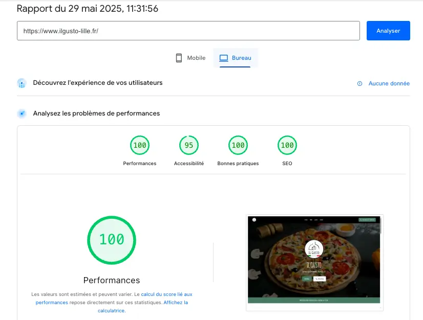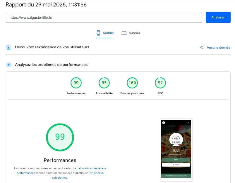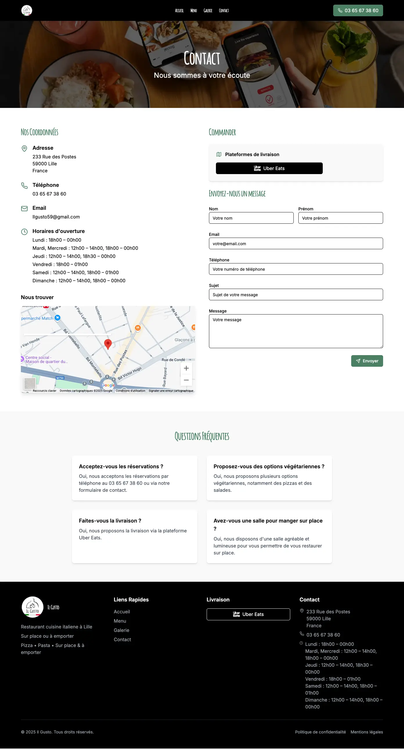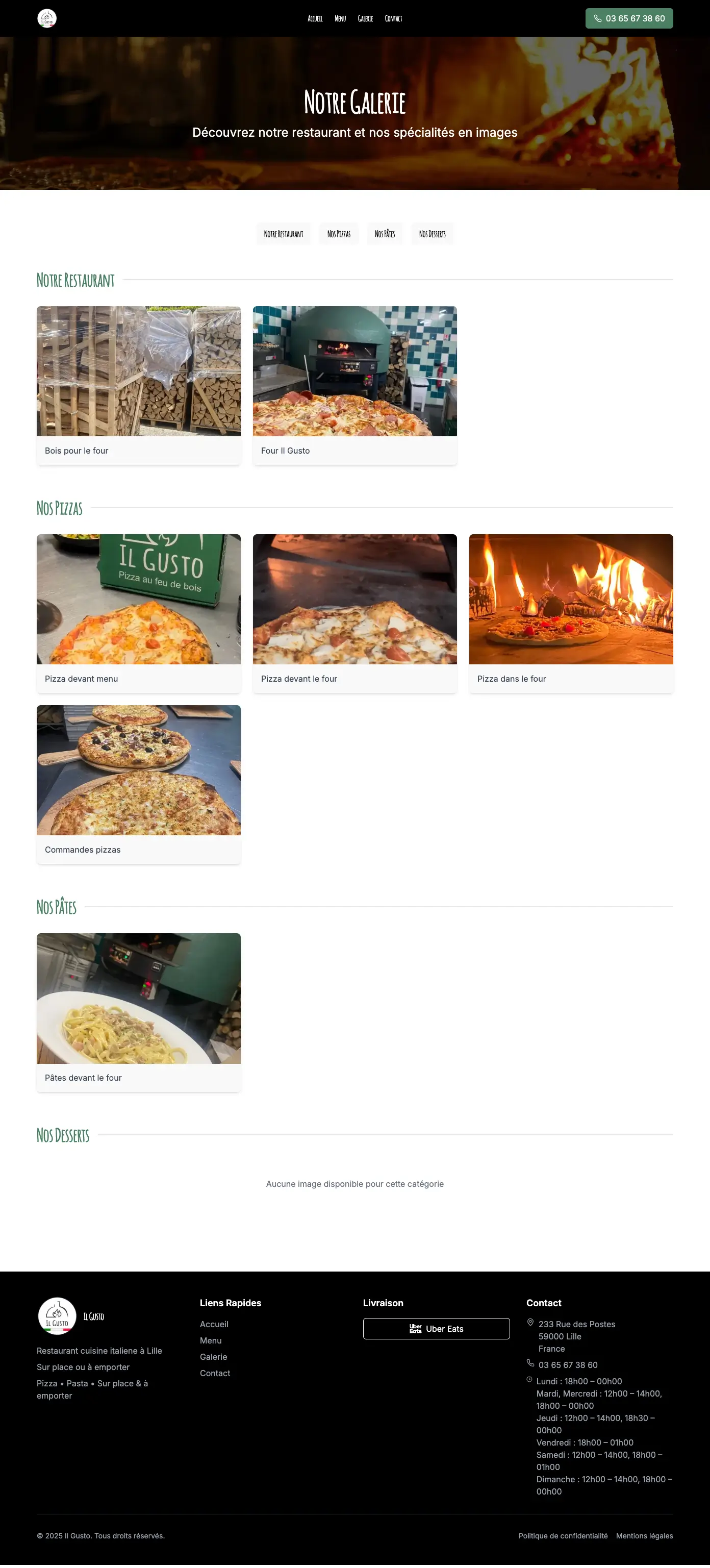 Design of a modern website for IL GUSTO, an Italian restaurant in Lille. Full-stack project with Strapi (headless CMS) and Next.js/React for performance and SEO. The site emphasizes the menu, specialties and delivery, with particular attention to optimizing content, speed and online visibility.