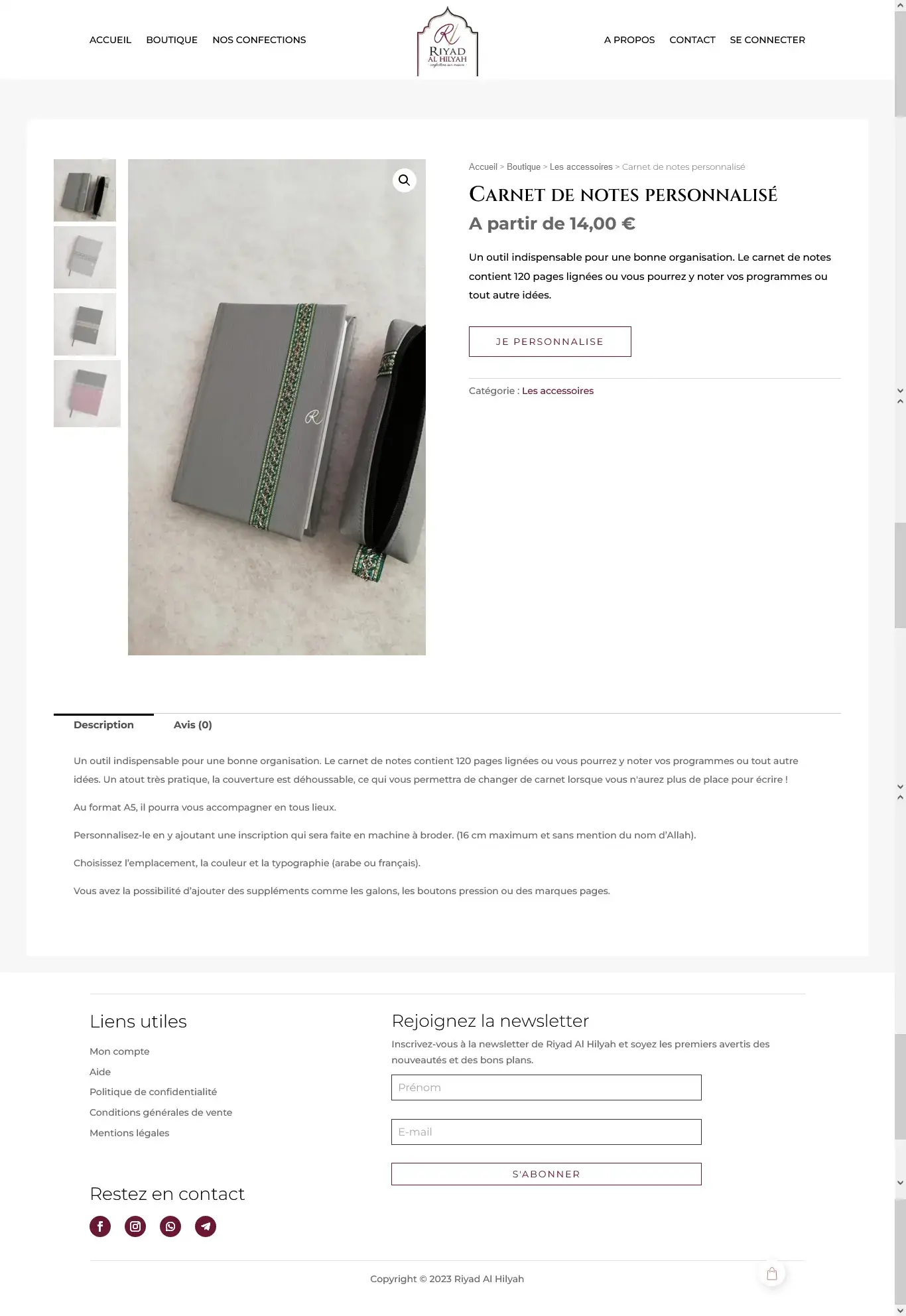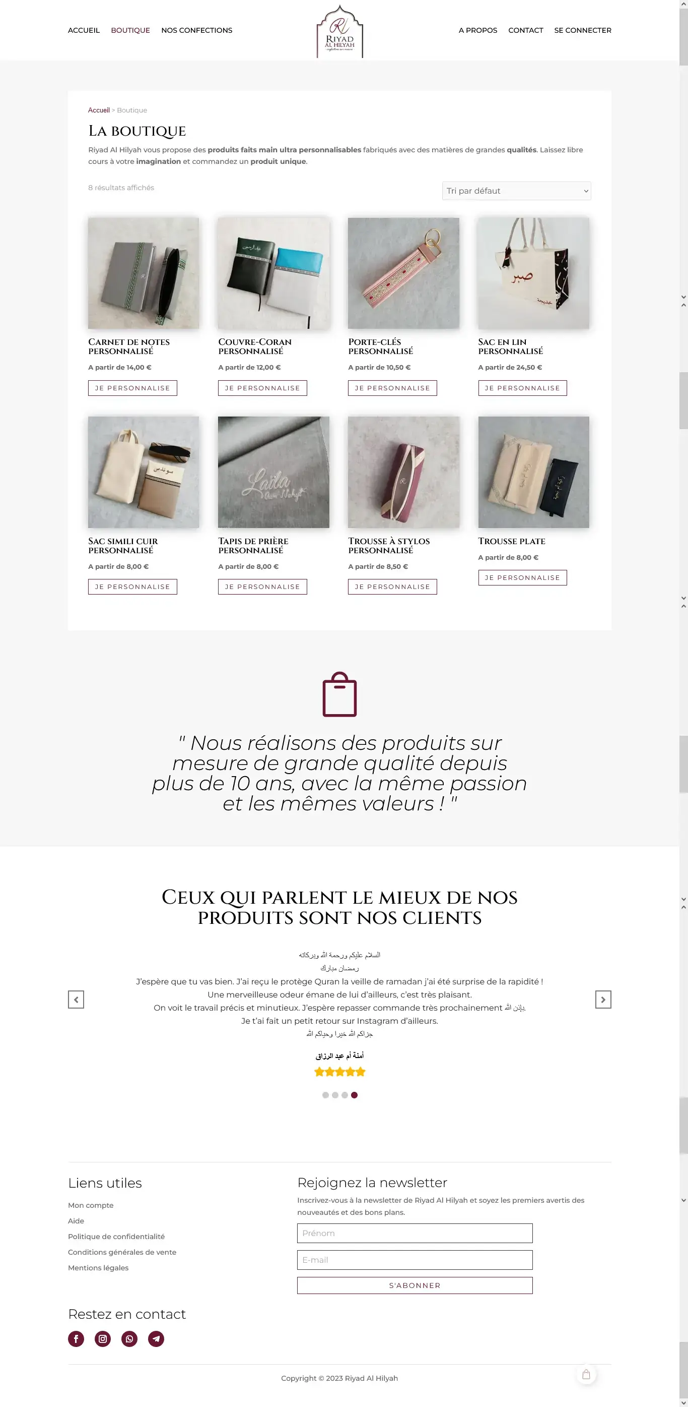 The client wanted a website to present her activity and allow her customers to directly personalize the various objects she offers and visualize the final result.