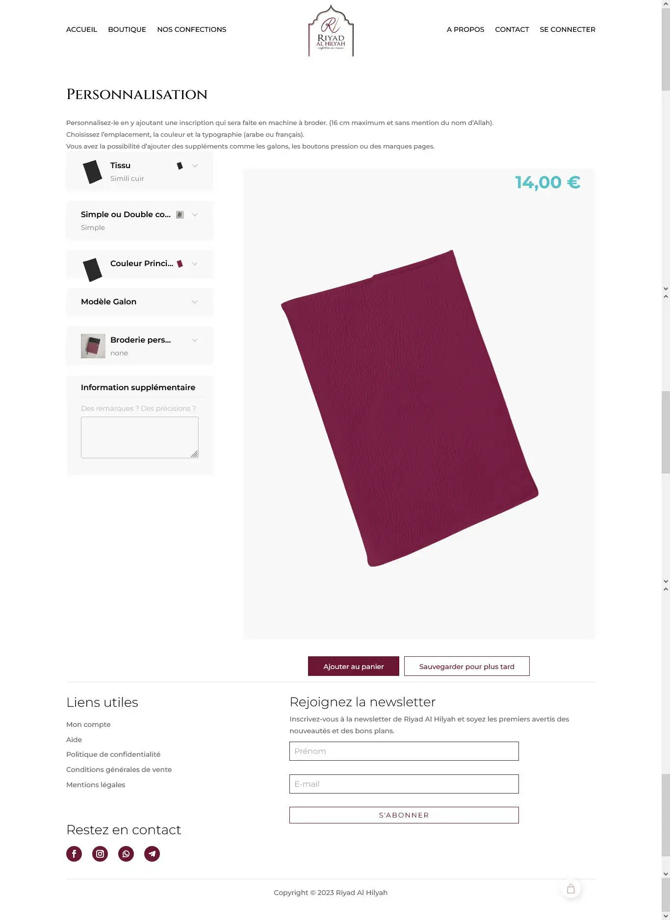 To achieve the goal, I used a WordPress tool which allows you to view live the additions and removals of options using layers. Thus, the visitor can personalize their object from color to size, including the choice of embroidery, braids or even fonts.