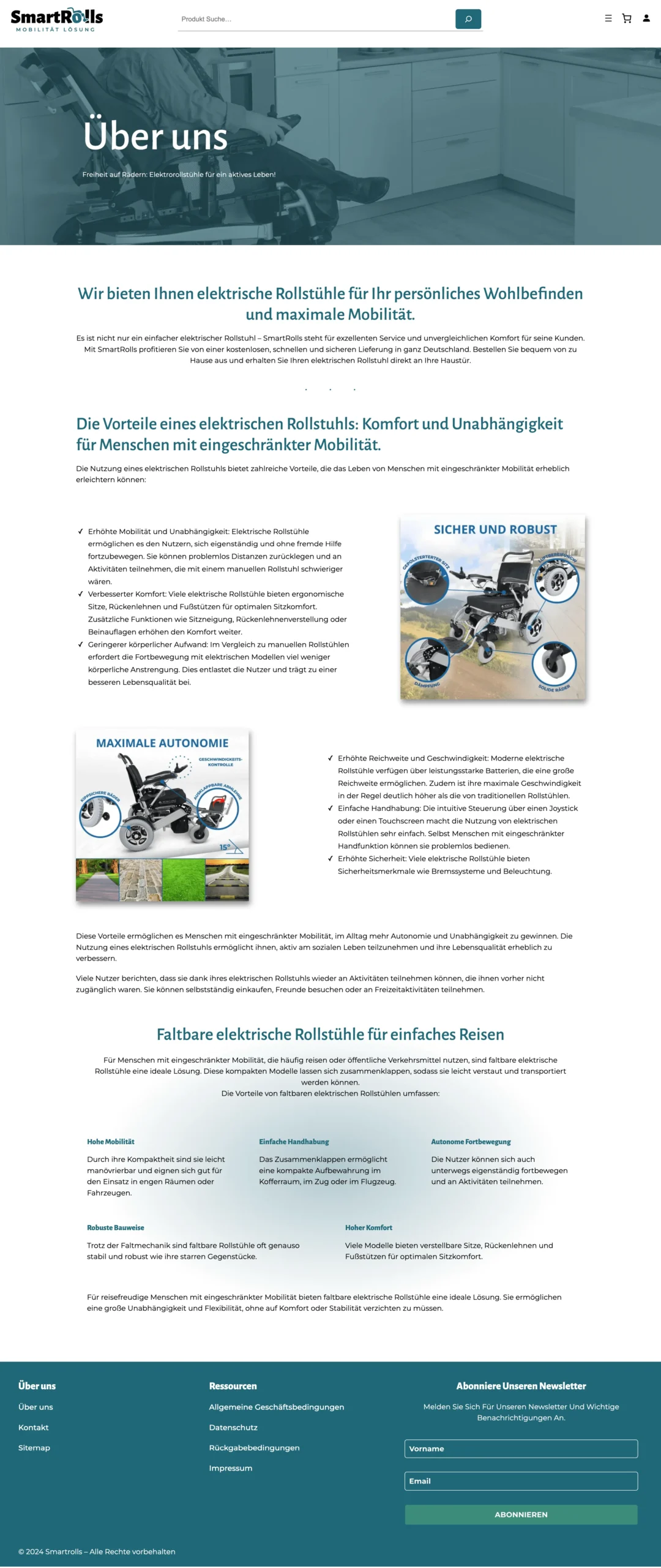 Website specializing in the online sale of electric wheelchairs, developed under the WordPress theme FSE Twenty Twenty-Four