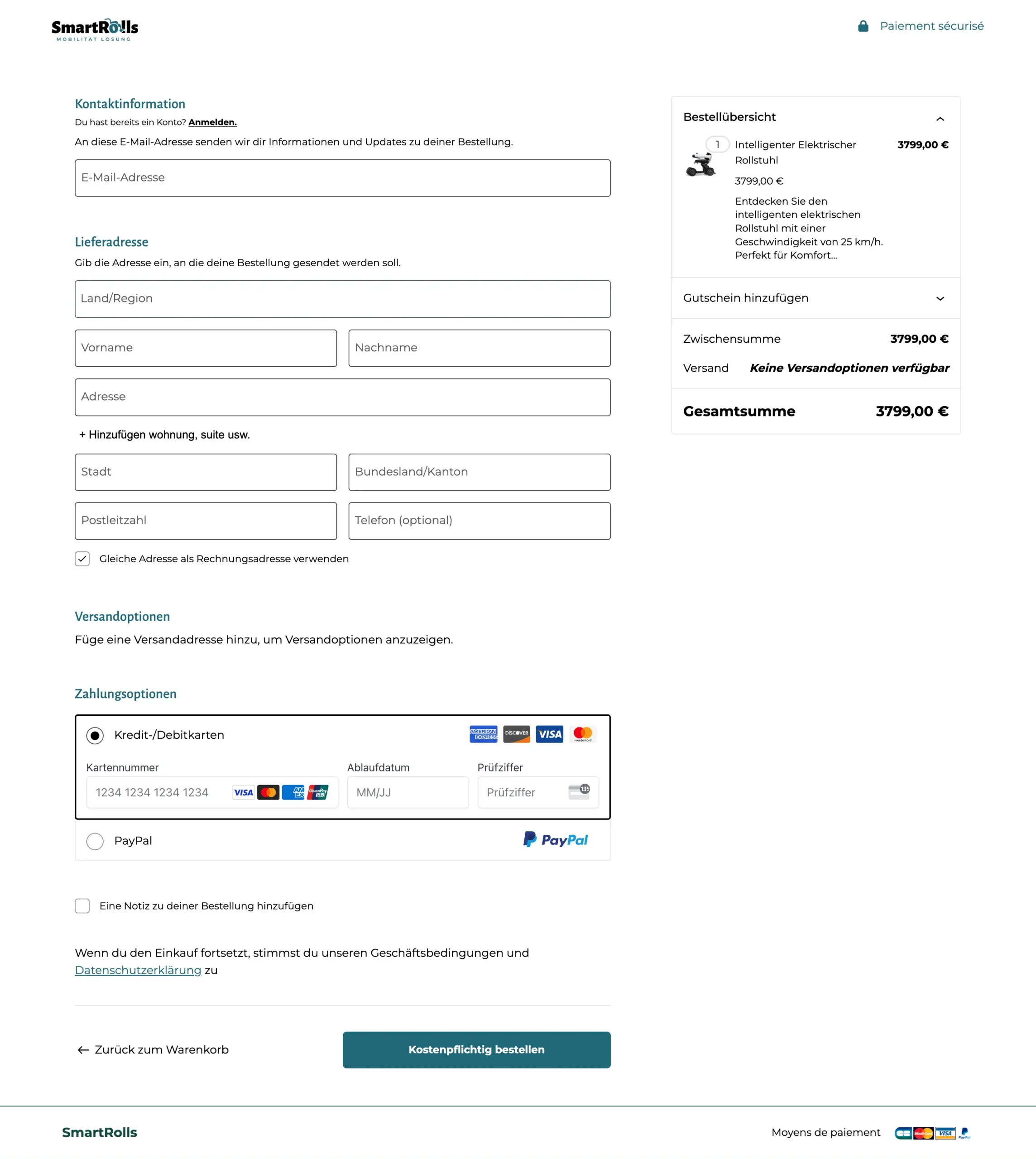 The client expressed the need for an e-commerce website to market their range of electric wheelchairs for the German, Austrian, and Swiss markets.