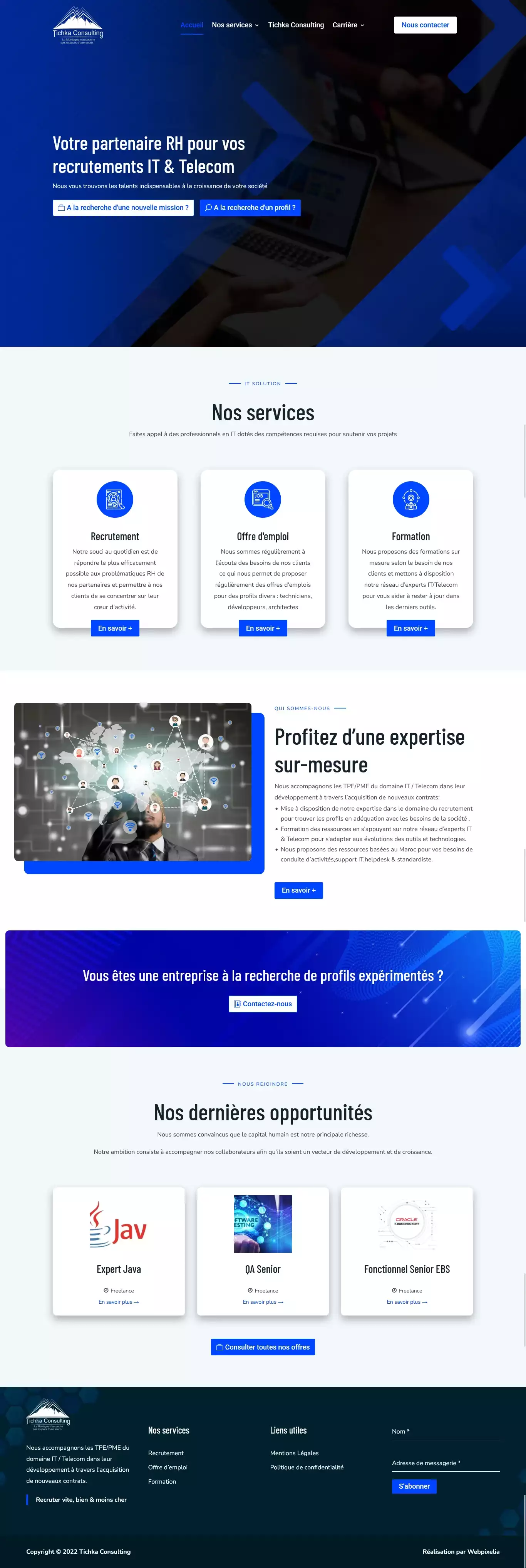 Creation of the website for Tichka Consulting, HR partner for IT Telecom recruitment of companies, with online job offers.