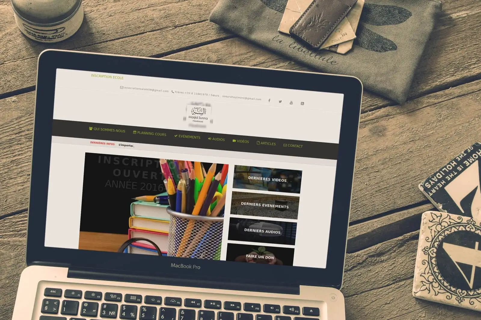 Utilisation de la plateforme WordPress avec mise en place d’un thème personnalisé.