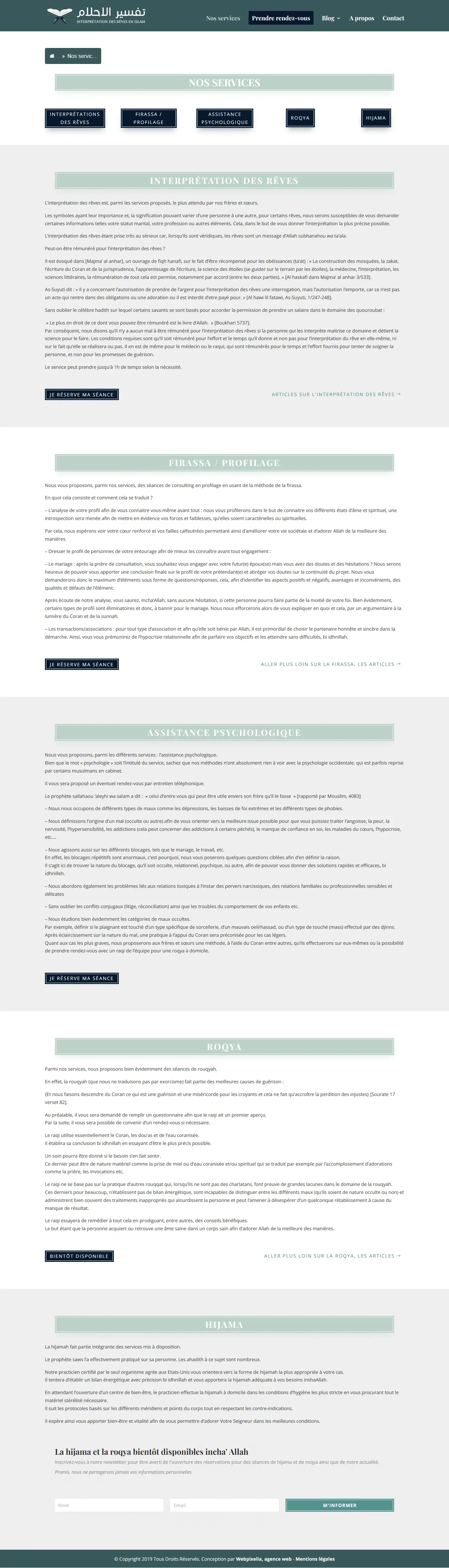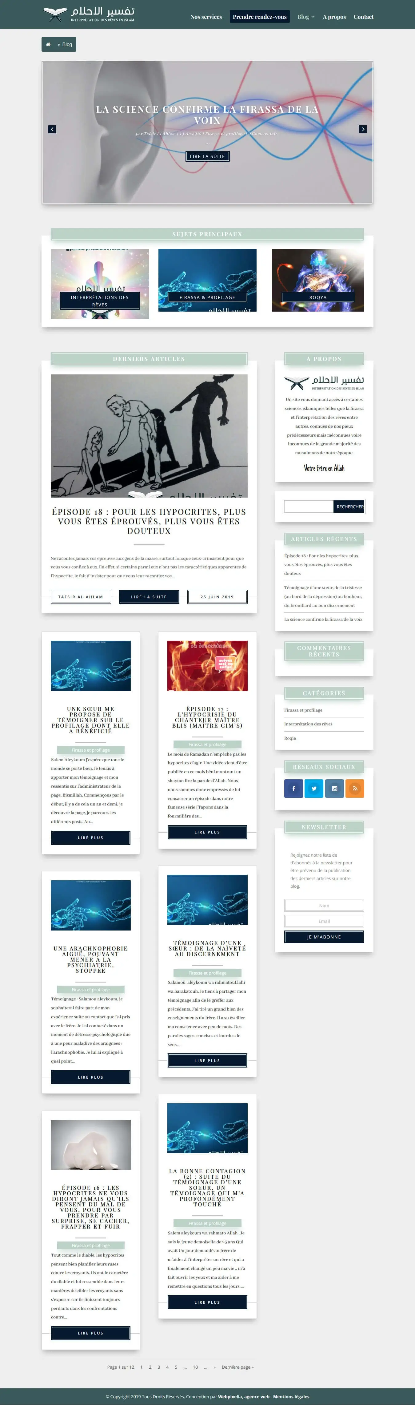 Un site vous donnant accès à certaines sciences islamiques telles que la firassa et l’interprétation des rêves entre autres, méconnues voire inconnues de la grande majorité des musulmans de notre époque. Vous y trouverez maints enseignements ainsi que les présentations de ces sublimes sciences.
